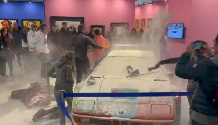 Διαδηλωτές κατά του κλίματος πέταξαν σήμερα αλεύρι πάνω σε ένα σπορ αυτοκίνητο που ζωγράφισε ο Αμερικανός ποπ καλλιτέχνης Άντι Γουόρχολ και το οποίο εκτίθεται στην οικονομική πρωτεύουσα της Ιταλίας.