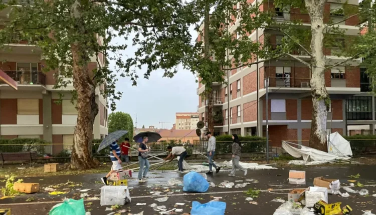 Ο ανεμοστρόβιλος «σήκωσε» δεκάδες υπαίθριους πάγκους που είχαν στηθεί για τοπική θρησκευτική γιορτή. Κόσμος, έντρομος, απομακρύνθηκε τρέχοντας από την περιοχή.