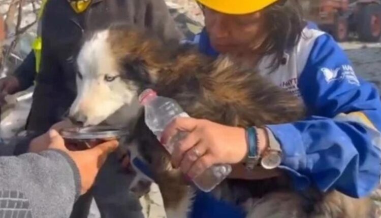 Ένας σκύλος ράτσας χάσκι διασώθηκε μετά από 23 ημέρες παγιδευμένος κάτω από ένα διώροφο κτίριο που κατέρρευσε στις 6 Φεβρουαρίου στην Τουρκία.