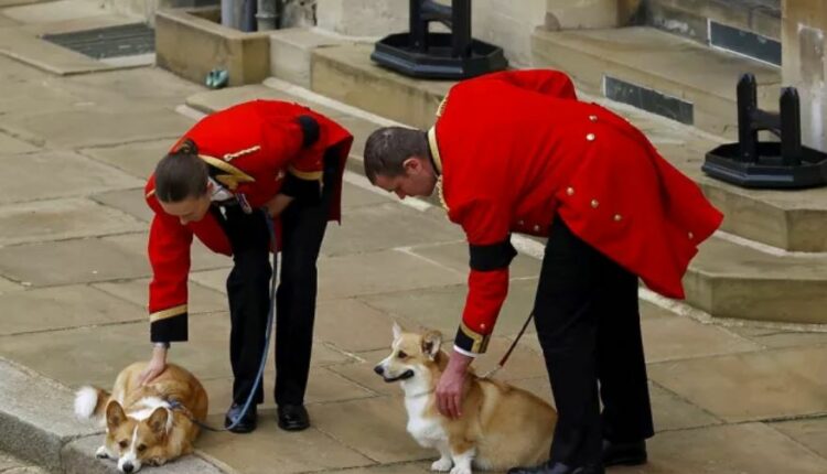 Τα δύο κόργκι της βασίλισσας, η Σάντι και ο Μίουικ, μεταφέρθηκαν επίσης από το προσωπικό στους κήπους της βασιλικής κατοικίας για να περιμένουν την άφιξη της σορού της βασίλισσας.