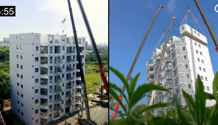 Το timelapse βίντεο της κατασκευής δείχνει μια μεγάλη ομάδα εργατών οικοδομών και τρεις γερανούς να ολοκληρώνουν το πολυώροφο κτίριο, το οποίο ονομάστηκε Living Building, σε μόλις 28 ώρες και 45 λεπτά.
