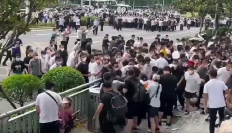 Demonstration repressed by the police in front of the Bank of China in #Zhengzhou. Thousands of small savers have not been able to withdraw money from their banks since April. Last month, the authorities deactivated the health passes of savers preparing to demonstrate #China pic.twitter.com/6c9CntGH4C