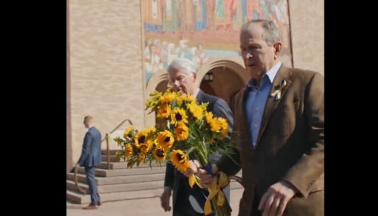 «Η Αμερική, ενωμένη, στηρίζει τον λαό της Ουκρανίας στη μάχη του για ελευθερία και ενάντια στην καταπίεση», έγραψε ο Μπιλ Κλίντον στο twitter συνοδεύοντας την ανάρτησή του με το βίντεο της -από κοινού με τον Τζορτζ Μπους- επίσκεψής τους σε ουκρανική εκκλησία.