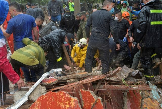 Στο σημείο της κατολίσθησης επιχειρούν συνεργεία έρευνας και διάσωσης που προσπαθούν να εντοπίσουν επιζώντες.