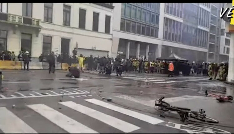 Αστυνομικοί των μονάδων αντιμετώπισης ταραχών, με ασπίδες και κράνη, είχαν αναπτυχθεί περιμετρικά της ευρωπαϊκής συνοικίας, όπου στεγάζονται οι θεσμοί της ΕΕ. Πολλοί δρόμοι είχαν αποκλειστεί. Οχήματα ρίψης νερού υπό πίεση βρίσκονται επίσης στο σημείο, ενώ ένα ελικόπτερο πετούσε πάνω από την περιοχή.