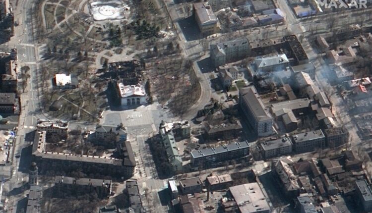 Μια δορυφορική εικόνα που τράβηξε η αμερικανική ιδιωτική εταιρεία Maxar Technologies, δείχνει τη λέξη «παιδιά» να αναγράφεται με μεγάλα λευκά γράμματα, στο μπροστινό και το πίσω μέρος του θεάτρου της Μαριούπολης, το οποίο καταγγέλλεται πως δέχτηκε επίθεση από ρωσικές δυνάμεις.
