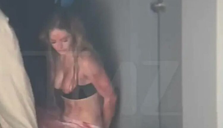 Στα αποκλειστικά πλάνα του «TMZ», φαίνεται μια γυναίκα με χειροπέδες να φορά το σουτιέν της και να είναι βουτηγμένη στο αίμα.