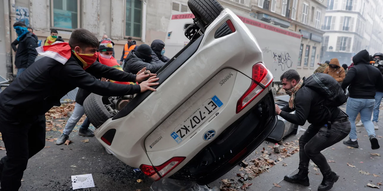 Οι Κούρδοι διαδηλωτές αναποδογύρισαν αρκετά αυτοκίνητα, ενώ μικρές φωτιές ξέσπασαν γύρω από την Πλατεία Δημοκρατίας που αποτελεί το παραδοσιακό τοπόσημο της γαλλικής πρωτεύουσας για την πραγματοποίηση διαδηλώσεων, καθώς οι Κούρδοι είχαν νωρίτερα πραγματοποιήσει μία ειρηνική διαμαρτυρία.