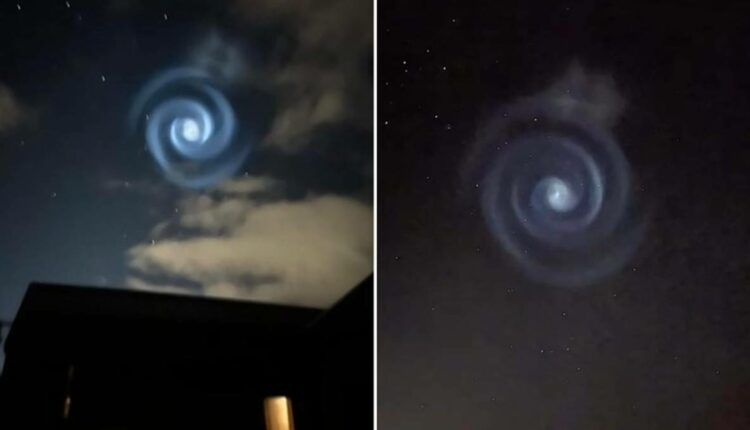 This spiral was certainly the tumbling upper stage of the Falcon 9 executing a fuel dump. Similar spirals have been seen after previous Falcon 9 launches. This is an exceptionally clear photo of the phenomenon.📸 Alasdair Burns pic.twitter.com/njSqZddbkl