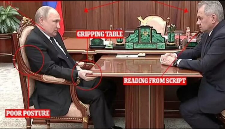Καθηγητής, σπεσιαλίστας στη γλώσσα του σώματος, δηλώνει στην εφημερίδα «SUN». Ο Πούτιν εμφανίστηκε σοκαριστικά αποδυναμωμένος, αν τον συγκρίνεις με τον άντρα που γνωρίζαμε μέχρι χθες. Ένας υγιής πρόεδρος δε θα χρειαζόταν να στηρίζεται με το χέρι του για να κρατηθεί όρθιος και δε θα ανησυχούσε για το αν θα κρατούσε και τα δυο του πόδια στο έδαφος».