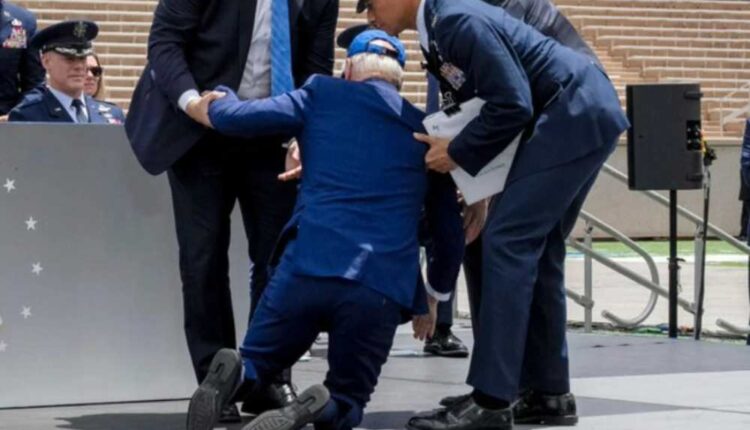BREAKING: Biden takes a big fall on stage just now at the U.S. Air Force Academy graduation pic.twitter.com/GxkMbpyoNo