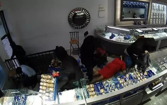 Κάμερα ασφαλείας κατέγραψε να σπάνε τα προστατευτικά τζάμια και να γεμίζουν τσάντες γεμάτες με χρυσά περιδέραια, βραχιόλια