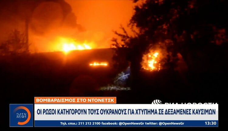 Αποθήκη καυσίμων στην αυτοανακηρυχθείσα Λαϊκή Δημοκρατία του Ντονέτσκ φαίνεται να βομβαρδίστηκε από δυνάμεις της Ουκρανίας.