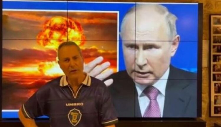 «Έχω μια προειδοποίηση για σένα Πούτιν», ήταν το μήνυμα που έστειλε στον Ρώσο πρόεδρο και ενώ στο βίντεο φαίνεται στο βάθος ο ηγέτης του Κρεμλίνου με ένα σύννεφο πυρηνικής έκρηξης.