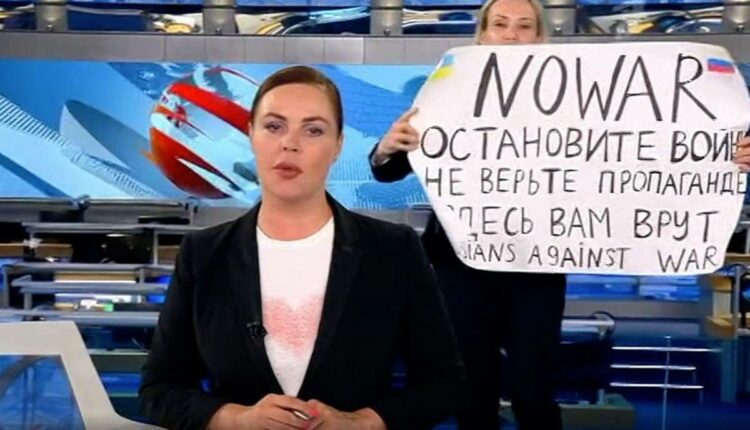 Η Μαρίνα Οβσιανίκοβα στάθηκε πίσω από την παρουσιάστρια των ειδήσεων με το πλακάτ της και φώναζε συνθήματα κατά του πολέμου.