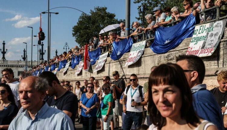 Αρκετές χιλιάδες άνθρωποι πραγματοποίησαν πορεία στο κέντρο της Βουδαπέστης το Σάββατο φωνάζοντας «Όρμπαν φύγε».