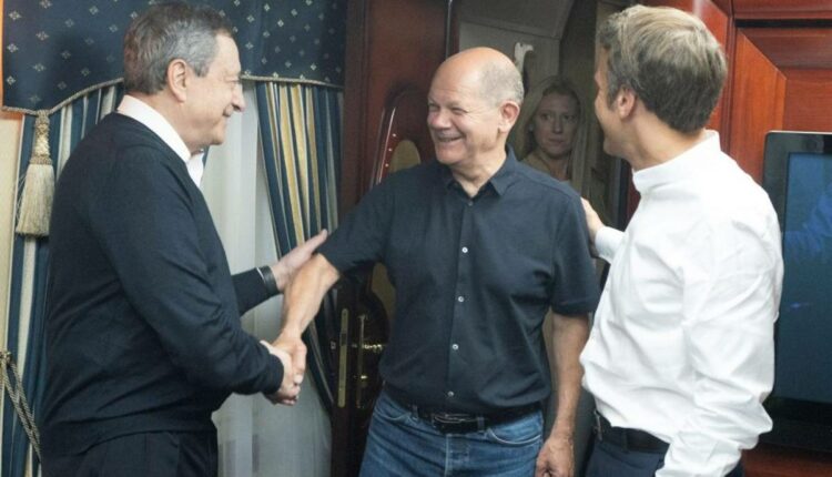 Με ειδικό τρένο έφτασαν στο Κίεβο ο Γάλλος πρόεδρος Εμανουέλ Μακρόν, ο Γερμανός καγκελάριος Όλαφ Σολτς και ο Ιταλός πρωθυπουργός Μάριο Ντράγκι όπου θα συναντήσουν τον πρόεδρο της Ουκρανίας, Βολοντίμιρ Ζελένσκι.
