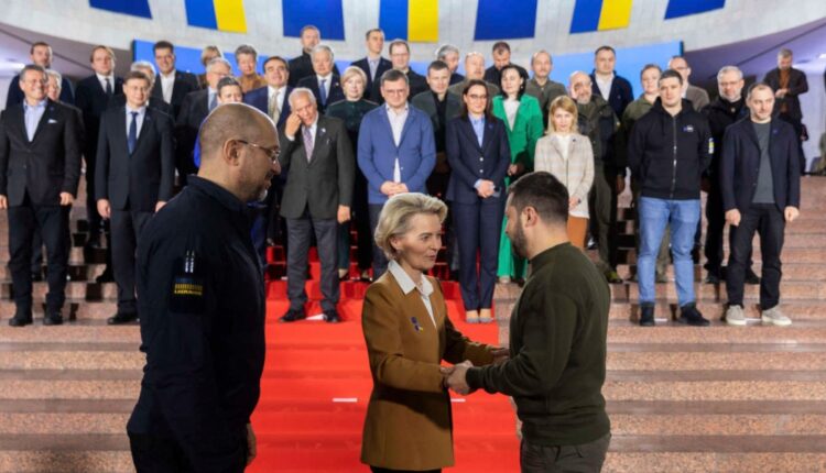 Ο αντιαεροπορικός συναγερμός επεκτάθηκε στη συνέχεια σε όλη τη χώρα, ενώ ο Ουκρανός πρόεδρος Βολοντίμιρ Ζελένσκι πρόκειται να υποδεχθεί τους ηγέτες της Ευρωπαϊκής Ένωσης.