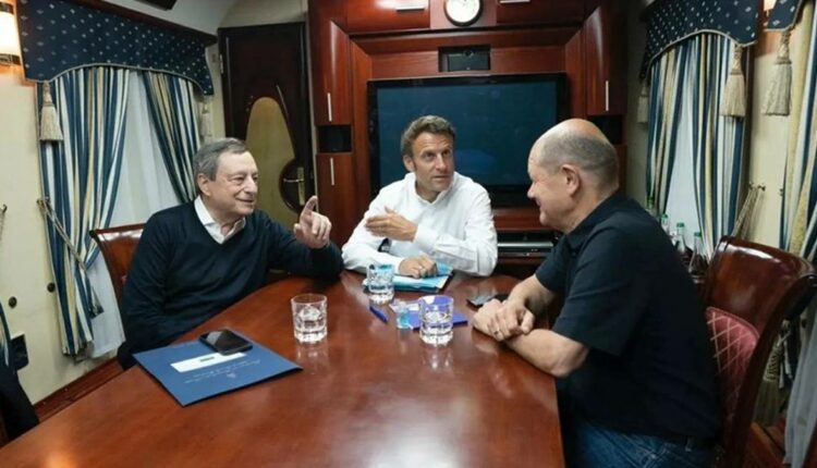 Ο Γάλλος πρόεδρος Εμανουέλ Μακρόν, ο Γερμανός καγκελάριος Όλαφ Σολτς και ο Ιταλός πρωθυπουργός Μάριο Ντράγκι επιβιβάστηκαν σε ειδικό τρένο και κατευθύνονται προς το Κίεβο, μετέδωσαν σήμερα ιταλικά και γερμανικά μέσα ενημέρωσης.
