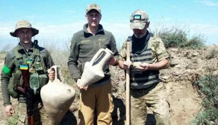 Σκάβοντας χαρακώματα για να αναχαιτίσουν τη ρωσική εισβολή, Ουκρανοί στρατιώτες ανακάλυψαν μία συλλογή από αρχαίους ελληνικούς αμφορείς στην Οδησσό.