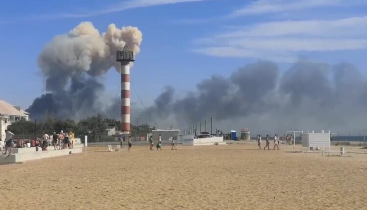 Βίντεο που αναρτήθηκε το απόγευμα της Τρίτης έδειξε μια σειρά από πολύ μεγάλες εκρήξεις στην αεροπορική βάση Σάκι, η οποία βρίσκεται περίπου 200 χιλιόμετρα πίσω από τις ρωσικές γραμμές του μετώπου στα νότια της Ουκρανίας.