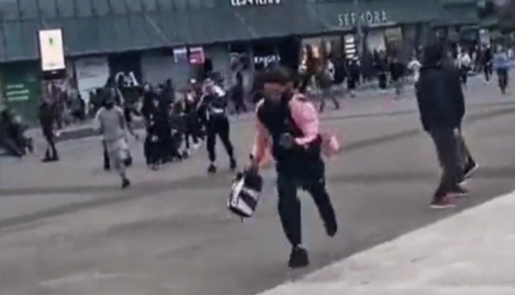 Στα βίντεο που ανέβηκαν στο Twitter φαίνονται άνθρωποι να έχουν κλειστεί μέσα στα καταστήματα του εμπορικού.