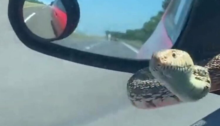 Το βίντεο προκαλεί σοκ, ειδικά αν σκεφτεί κανείς πως το φίδι εμφανίστηκε πρώτα στο δεξιό καθρέφτη του αυτοκινήτου της οδηγού και στη συνέχεια άρχισε να κάνει βόλτες όσο το ΙΧ ήταν εν κινήσει.