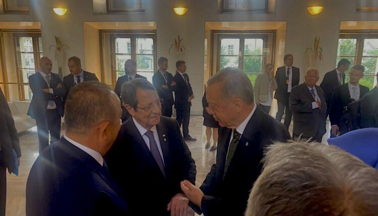 Ο Νίκος Αναστασιάδης είχε ένα τετ α τετ λίγων λεπτών με τον Ρετζέπ Ταγίπ Ερντογάν στους χώρους αναμονής των εργασιών της της Ευρωπαϊκής Πολιτικής Κοινότητας που ξεκίνησε την Πέμπτη στην Πράγα με τη συμμετοχή 44 κρατών.