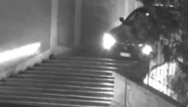 Το βίντεο που δόθηκε στη δημοσιότητα από την αστυνομία της Ρώμης, δείχνει τη Μαζεράτι να κινείται στη ζώνη πεζών πάνω από τα διάσημα σκαλοπάτια.