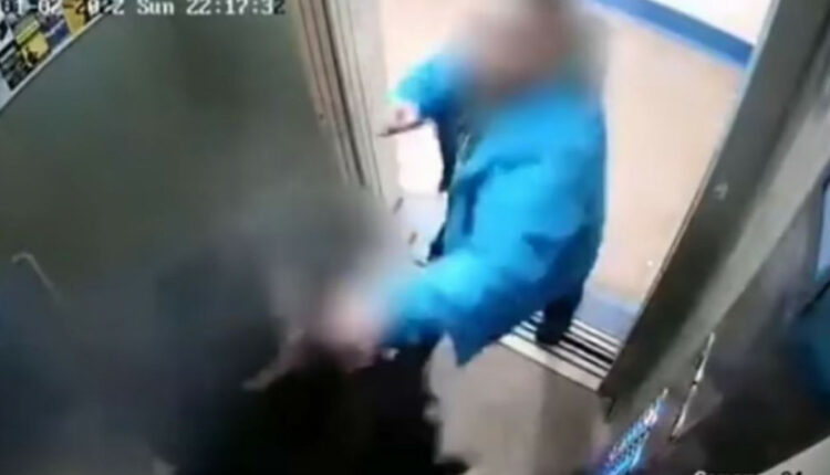 Η κάμερα δείχνει τον πατέρα έξαλλο να μπαίνει στο ασανσέρ και να γρονθοκοπεί τον 27χρονο παιδεραστή.