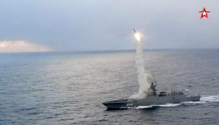Τα πλάνα που είναι μονταρισμένα από διάφορες λήψεις δείχνουν τον «ασταμάτητο» πύραυλο Zircon των 9 mach να εκτοξεύεται από τη φρεγάτα Admiral Gorshkov στη Λευκή Θάλασσα.