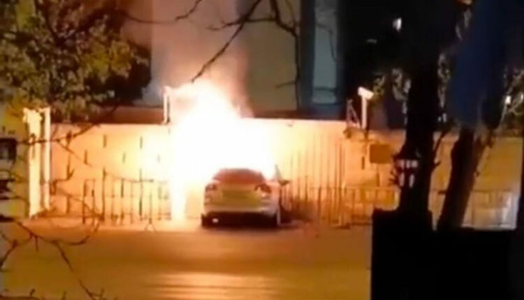 A car crashed into the #Russian Embassy building in #Bucharest, #Romania; after the collision the car caught fire. According to local media, the driver died. pic.twitter.com/Ttwud49eqU