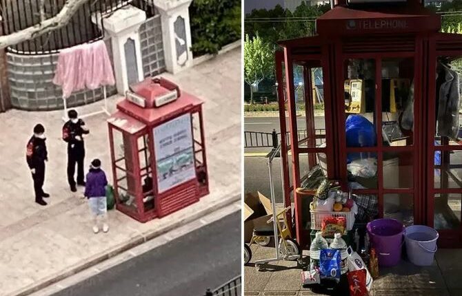 Μία γυναίκα στη Σανγκάη βρήκε καταφύγιο σ’ έναν τηλεφωνικό θάλαμο επί ένα μήνα. Μαζί της είχε και τον σκύλο της. Για να τηρήσει το αυστηρό και παρατεταμένο lockdown που επέβαλαν οι αρχές της πολυπληθέστερης πόλης της Κίνας για την αναχαίτιση του νέου κύματος της πανδημίας, η γυναίκα εξασφάλισε μία στέγη, έστω κι αν χωρούσε οριακά με το κατοικίδιό της.