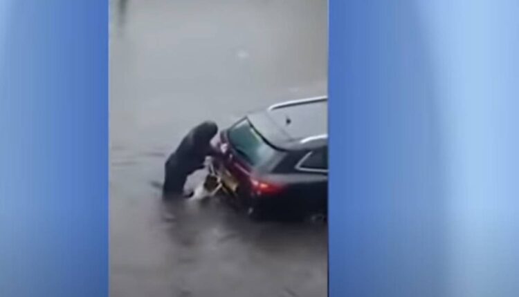 Ένας σκύλος απαθανατίστηκε σε βίντεο να βοηθά -μαζί με την ιδιοκτήτριά του- δύο γυναίκες να ξεκολλήσουν με ασφάλεια από σημείο στο οποίο είχε εγκλωβιστεί το αυτοκίνητό τους εξαιτίας των έντονων πλημμυρικών φαινομένων στους δρόμους της Γλασκώβης.