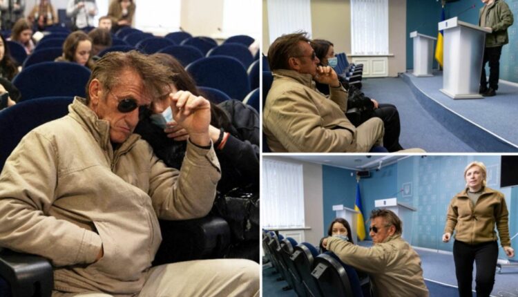 Φορώντας γυαλιά ηλίου και ένα bomber τζάκετ ο Σον Πεν άκουσε με προσοχή την ενημέρωση από το γραφείο της προεδρίας του Κιέβου.