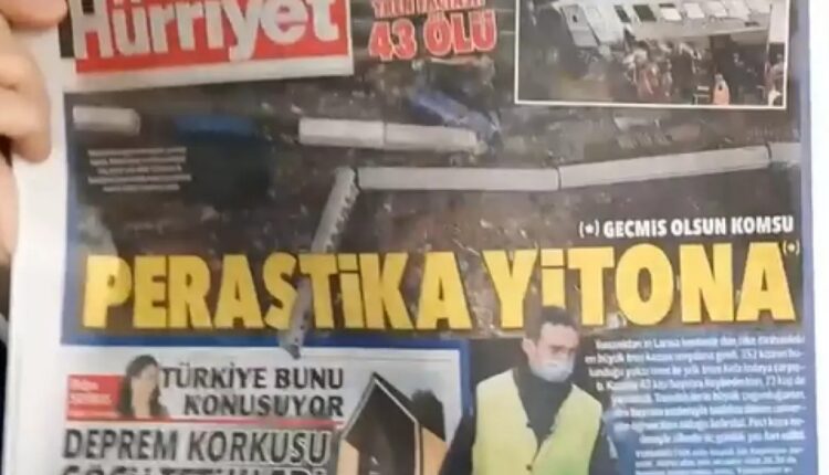 Ο τίτλος της τουρκικής εφημερίδας Hurriyet, η οποία στο πρωτοσέλιδό της αναφέρεται στο σιδηροδρομικό δυστύχημα είναι, «Περαστικά γείτονα».
