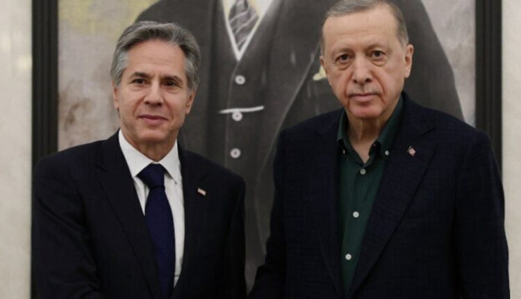 Η συνάντηση Ερντογάν-Μπλίνκεν πραγματοποιήθηκε στην αίθουσα εκδηλώσεων του αεροδρόμιου Εσενμπογκάι στην Άγκυρα.