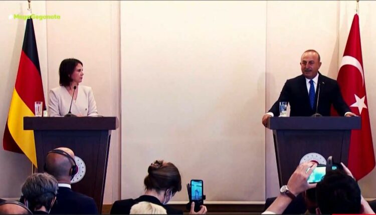 Η ξεκάθαρη στήριξη των ελληνικών θέσεων από την Γερμανίδα υπουργό Εξωτερικών, προκάλεσε την οργή της Άγκυρας. Ο Μεβλούτ Τσαβούσογλου ξεκίνησε την συνέντευξη τύπου πλάι στην Γερμανίδα ομόλογό του με κατά μέτωπο επίθεση.