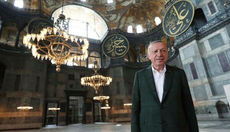 Ως γνωστόν, ο Ερντογάν τον Ιούλιο του 2020 υπέγραψε προεδρικό διάταγμα για τη μετατροπή του Ναού της Αγίας Σοφίας, που έχτισε ο Ιουστινιανός το 537 μ.Χ. ξανά σε τέμενος από μουσείο, σε μια κίνηση που προκάλεσε διεθνή κατακραυγή. Συγκεκριμένα, το συμβόλαιο για την αναστήλωση, που υπεγράφη στις 21 Ιανουαρίου, προβλέπει την ολοκλήρωση μέχρι τον Ιανουάριο του 2024 όλων των αναστηλωτικών έργων του Συγκροτήματος της Αγίας Σοφίας και της αποκατάστασης των τάφων, του δημοτικού σχολείου και της προσωρινής κατοικίας στο συγκρότημα, σύμφωνα με δημοσιεύματα τουρκικών εφημερίδων.