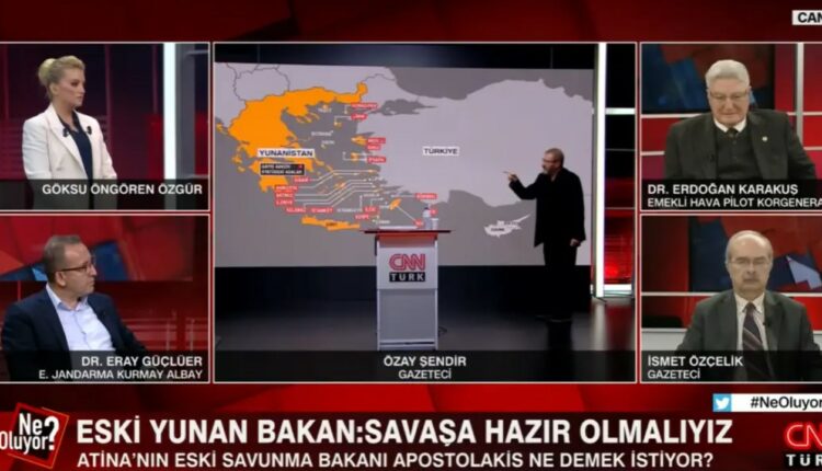 «Η Ελλάδα δεν μπορεί να επεκτείνει τα χωρικά της ύδατα στα 12 ν.μ. νοτίως της Κρήτης, επειδή η Γαύδος είναι … τουρκική», υποστηρίζει προκλητικά ο απόστρατος αντιπτέραρχος Ερντογάν Καρακούς, μιλώντας σε εκπομπή του CNN Turk.