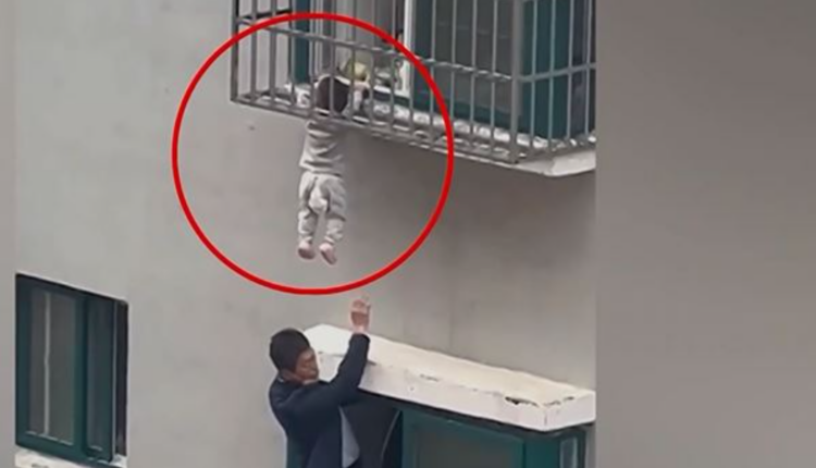 Εικόνες που κόβουν την ανάσα έρχονται από την Κίνα, με τη διάσωση ενός μικρού παιδιού που κρεμόταν στο κενό από τα κάγκελα παραθύρου στον τέταρτο όροφο πολυκατοικίας.