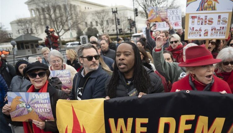 Στο πλευρό της Τζέιν Φόντα στάθηκαν οι αστέρες του Χόλιγουντ Χοακίν Φίνιξ και Μάρτιν Σιν, σε διαδήλωση που έγινε χθες, Παρασκευή, έξω από το κτίριο του Καπιτωλίου στις ΗΠΑ, ζητώντας άμεση δράση για την κλιματική κρίση.