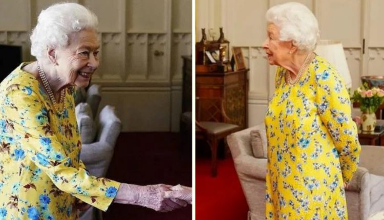 Τα στιγμιότυπα δείχνουν την 96χρονη βασίλισσα να φοράει ένα φωτεινό κίτρινο φόρεμα καθώς χαμογελά και σφίγγει το χέρι της Αυστραλής πολιτικού μέσα στο κάστρο Γουίνδσορ.