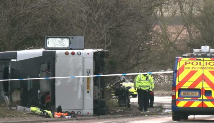 Σύμφωνα με ό,τι έχει γίνει γνωστό, το λεωφορείο μετέφερε εργάτες στον πυρηνικό σταθμό Hinkley Point C. Στο περιστατικό ενεπλάκη και ένας οδηγός μηχανής.