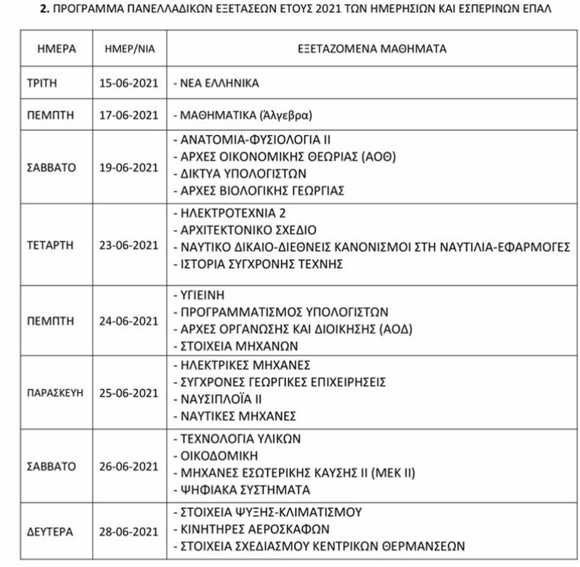 Η εξεταστέα ύλη και τα θέματα των εξετάσεων είναι κοινά για όλους τους υποψηφίους από τα ημερήσια και εσπερινά ΓΕΛ.