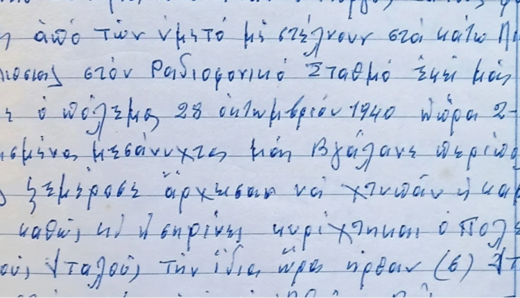 Στις 2 με 3 μετά τα μεσάνυχτα βγήκαμαν περίπολο και μόλις άρχισε να ξημερώνει ακούμε να χτυπούν όλες οι καμπάνες και να βουίζουν παντού όλες οι σειρήνες. Είχε κηρυχτεί πόλεμος από τους Ιταλούς. Την ίδια ώρα, ήρθαν και 6 ιταλικά αεροπλάνα πάνω από την Αθήνα. Αμέσως βάζουν τα βαριά αντιαεροπορικά. Τα αεροπλάνα όμως παίρνουν μεγάλο ύψος και φεύγουν. Το απόγευμα μας ήρθαν άλλα τρία, έφυγαν και αυτά. Δεν ξαναεμφανίστηκαν άλλα.