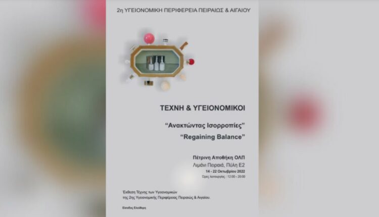 Αναγνωρίζοντας την συμβολή των τεχνών στην προώθηση της σωματικής, ψυχικής και κοινωνικής υγείας των ατόμων και ιδίως των επαγγελματιών υγείας, η Διοίκηση της 2ης Υγειονομικής Περιφέρειας Πειραιώς & Αιγαίου εγκαινιάζει στις 14 Οκτωβρίου 2022 την Έκθεση Τέχνης των Υγειονομικών Νοσοκομείων και δομών Πρωτοβάθμιας Φροντίδας Υγείας αρμοδιότητάς της με τη διεξαγωγή του Πολυδραστικού Συμποσίου TEXNH & ΥΓΕΙΟΝΟΜΙΚΟΙ «Regaining Balance».