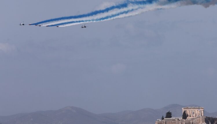 Ένα αεροσκάφος της Aegean μαζί με το αεροσκάφος Skyvan διήλθαν σήμερα, Πέμπτη 15 Σεπτεμβρίου, περίπου στις 11:30, πάνω από την Ακρόπολη για αεροφωτογράφιση, στο πλαίσιο της Athens Flying Week.