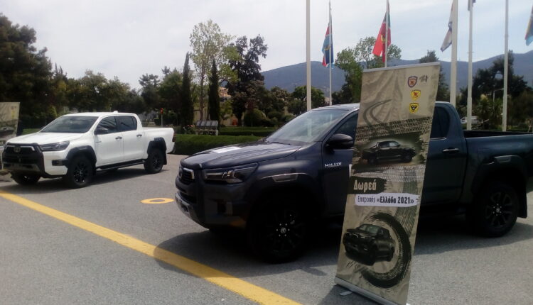 Στο πλαίσιο αυτό, σήμερα το πρωί στο υπουργείο Εθνικής Άμυνας στο Στρατόπεδο «Παπάγου», πραγματοποιήθηκε η τελετή παραδόσεως των 20 οχημάτων διπλής καμπίνας («διπλοκάμπινα»), με τετρακίνηση (4Χ4), τύπου TOYOTA 2,4D Ντήζελ, από τον Οργανισμό δια της Προέδρου του κ.Γιάννας Αγγελοπούλου προς την πολιτική και στρατιωτική ηγεσία των Ενόπλων Δυνάμεων, του υπουργού Εθνικής Αμύνης, Νίκου Παναγιωτόπουλου, του υφυπουργού. Νίκου Χαρδαλιά, των Αρχηγών ΓΕΕΘΑ και ΓΕΣ Στρατηγού, Κωνσταντίνου Φλώρου και Χαράλαμπου Λαλούση και των Υπαρχηγών ΓΕΝ και ΓΕΑ Υποναυάρχου Καμπουράκη ΠΝ και Υποπτεράρχου (Ι) Δ.Γρηγοριάδη αντιστοίχως, ως εκπροσώπων των «δικαιολογημένως απόντων» Αρχηγών τους.
