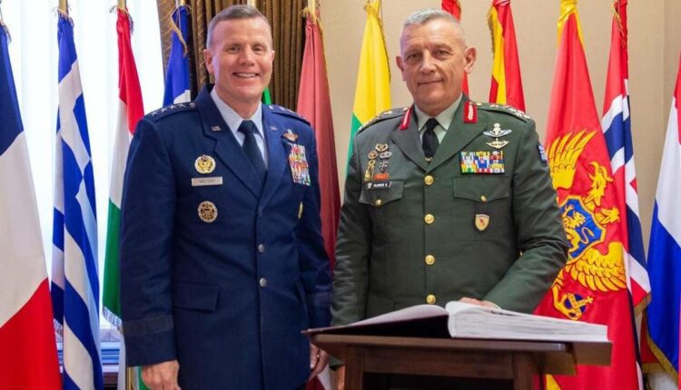 Στη συνέχεια και συνοδευόμενος από τον Στρατιωτικό Αντιπρόσωπο της Ελλάδος στο SHAPE Αντιστράτηγο Κωνσταντίνο Κούτρα, ο Αρχηγός ΓΕΕΘΑ ενημερώθηκε από την Αντιπροσωπεία για τα θέματα της αρμοδιότητάς της.